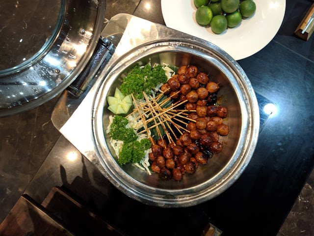 Tenang, kita mulai dari yang ringan dulu, biar engga kaget perutnya. Okeh kalau kamu emang beneran mau makan puas sepuas-puasnya malam itu atria menyediakan pelbagai olahan daging dari: pedasan ayam, bakso bakar, ceker pedas, ikan bumbu padang dan yang penting nasi putih! Eh nasi putih mah udah biasa kan? Jadi all you can eat makan lauk doang itu asyik sekali loh! #TimGakMauRugi Dan kesemuanya itu ambil-ambil aja! Jangan kasih kendor, ingat ini all you can eat!!!