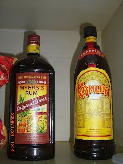 Rum (juice tebu yang telah difermentasi) & Kahlua ( liquor terbuat dari campuran kopi, vanila, rum dan juice tebu – mengandung 26% alcohol)