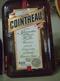 cointreau : liquor berisi campuran brandy dan kulit jeruk mengandung 40% alcohol