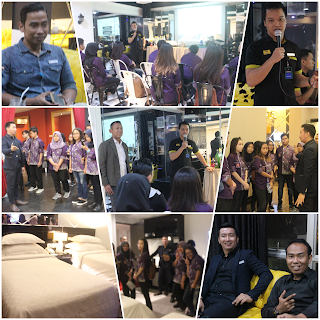 Mereka dikenalkan fasilitas kamar hotel mulai Deluxe Room dengan luasan 32 m2 di