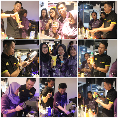 Selain diajarkan Dika cara meracik Cocktail dan Mocktail, mahasiswa Akpar Majapahirt itu juga dikenalkan teknik