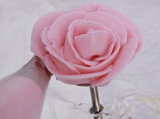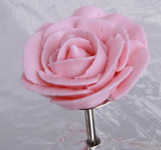 5. Hasil akhir bunga mawar butter cream. Dinginkan sebentar di dalam kulkas agar butter cream lebih keras, mudah dipindahkan dan tidak mudah rusak.