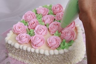 Menyajikan kue tart atau kue ulang tahun dengan dekorasi buatan sendiri tentu sangat membanggakan. Tidak perlu hiasan dengan teknik yang rumit, dengan bunga mawar butter cream, kue ulang tahun Anda sudah bisa tampil cantik mempesona. Selamat Berlatih. Dapur Uji/Teks/Foto: Budi Sutomo