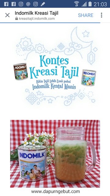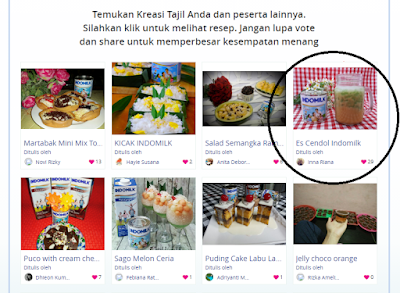 Kontes Kreasi Tajil Indomilk ini baru saja berakhir kemarin. Dan saya alhamdulillah… nggak menang. Tetap bersyukur karena dengan ikut kontes ini, saya jadi tahu banyak teman-teman yang mendukung saya supaya bisa menang. Dalam kontes ini, peserta bisa meminta dukungan vote sebanyak-banyaknya supaya peluang menang lebih besar. Sayang, mekanisme vote-nya sedikit ribet dan banyak peserta yang fotonya memperoleh 0 (nol) vote saja.