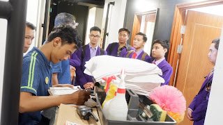 mahasiswa (semuanya perempuan) diminta tampil untuk mempraktikkan making bed dan belajar teknik dusting (cara membersihkan debu) di kamar