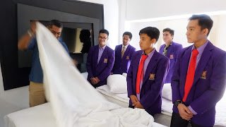 Sebelum belajar cara me-make up room dan praktik making bed, Kaprodi D3 Perhotelan Akpar