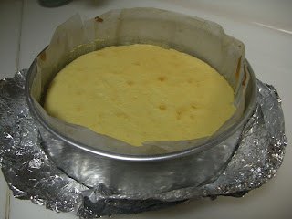 Setelah isi pastel siap, aku mulai menggarap si JCC. Nggak sulit, bisa diatasi walaupun mata rasanya kayak dilem pake alteco… :D. Adonan JCC jadi, masuk oven, ganti menuntaskan pastel tutup. Sudah dicetak semua, masukin ke oven, sebelahan sama JCC. Hebatnya si JCC ini adalah, walaupun pintu oven dibuka tutup beberapa kali, cakenya nggak amblegh. Ngelihat jam, sudah jam 7. Buruan mandi, trus nengokin si pastel tutup dan JCC. JCCnya masih belum kecoklatan juga atasnya, tapi test tusuk sudah kering…ya sudah, diringkes aja. Dandan bentar, berangkat ke kantor bawa pastel dan JCC panas yang masih polos plus semua peralatan decorating, termasuk buah dan panci kecil untuk manasin apricot glaze…mau dikerjakan dikantor maksudku… ;p