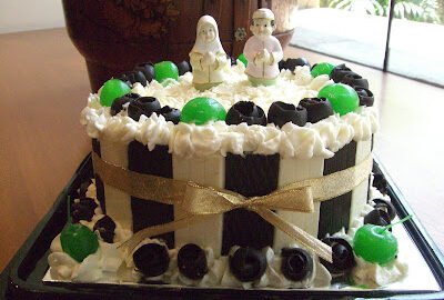 Order hari ini datang dari keluarga Ismu yang akan dikirimkan kepada besannya. Minta base cakenya Black Forest tapi decorationnya mau yang simple...