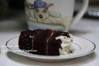Ini pertama kali aku bikin Red Velvet Cake. Sejak lihat resepnya di blog mbak Ria Icip Icip di Dapur (yang secara sepihak...