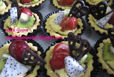 Snack set, pesanan Ayu dan Meita untuk meeting meeting mereka hari ini. Isinya : puding coklat dengan fruit cocktail fruit pie American risoles...