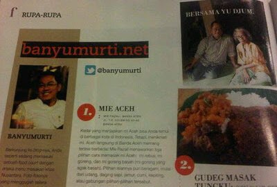 Setelah sempet nongol di Majalah Yuk Makan (Edisi April 2011) dan di Koran Jakarta (10 Oktober 2011), banyumurti.net kembali muncul di media...