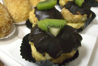 Hari kedua pesanan Meita. Yang pagi soes ayam jamur dalam alfoil cup dan fruit pie… Siangnya rolled sausages : dan pudding kelapa muda