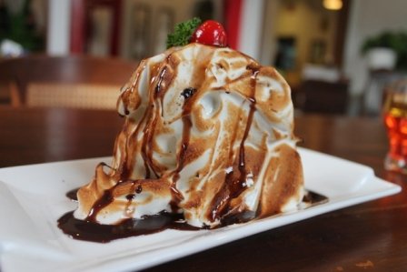 Satu lagi nih resto dengan tempat yang cozy dengan pelayanan yang istimewa, dan yang paling penting harga menu di Kongkalikong tidah menguras kantong. Menu yang ditawarkanpun lengkap mulai dari olahan ayam nusantara hingga pasta dan pizza. Namun yang menggoda mata dan wajib dicoba salah satunya adalah Baked Alaska. Kue coklat dengan ice cream strawberry dilapisi white cream dan disiram sauce coklat yang dibakar permukaannya hingga menyerupai caramel. Harga Rp 15.000 tampaknya terasa murah jika dilihat dari porsinya yang lebih dari cukup.