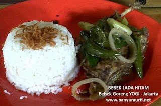 Kuliner bebek emang lagi trend, setelah nyobain Bebek Garang di Bandung, bulan lalu saya sempet mampir ke Bebek Goreng Yogi di Jl. Panjang, Jakarta Barat. Namanya emang sudah sering saya dengar dan cukup “melegenda” sampe2 sang pemilik ikutan jadi bintang meberikan testimoni di iklan sabun pencuci piring π Beragam aneka olahan daging bebek segera menyambut kita dietalase, berebut untuk dipilih. Sebut saja Bebek Sambal Hijau, salah satu menu favorit di tempat ini. Kelembutan daging bebek dengan metoda pengelahan yang tepat berpadu dengan bumbu sambal hijau yang pedes-pedes gimana gitu, bener-bener merangsang kelenjar air liur kita untuk terus bekerja. Seluruuupppp……
