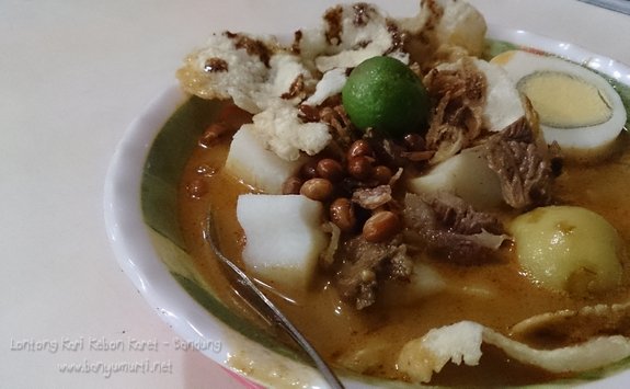 Ada satu menu sarapan yang unik kalau kamu lagi di Kota Bandung, namanya Lontong Kari. Kuliner Bandung yang satu ini belum penah saya temukan di kota lain. Walau namanya kari tapi rasanya cenderung mirip gulai dengan kuah yang lebih ringan, berisi potongan lontong yang umumnya ditemani dengan daging lemak (tetelan) sapi. Kita bisa menemukan penjaja lontong kari di berbagai sudut di kota kembang ini, baik yang mangkal maupun yang berkeliling dengan pikulan atau gerobak. Salah satu penjual lontong kari yang melegenda adalah Lontong Kari Kebon Karet. Namanya diambil dari tempat berjualannya yang berlokasi di Gg Kebon Karet, dekat dengan kantor Gubernuran Jl. Otto Iskandar Dinata (Otista), tepat di seberang Hotel Guntur. Apa sih yang membuat lontong kari kebun karet ini beda dan spesial dibanding lontong kari lainnya?