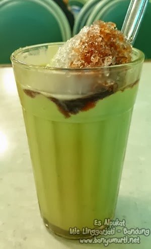 Atas rekomendasi banyak orang juga saya tergoda untuk memesan Es Alpukat. Katanya enak banget. Saya berpikir, bukannya dimana-mana es alpukat ya gitu-gitu saja? Pertanyaan saya langsung terjawab begitu suapan es pertama Es Alpukat itu hinggap di rongga mulut. Alpukat ini tidak disajikan dengan diblend halus tapi dihancurkan saja. Yang membuat istimewa dari minuman seharga 23ribu rupiah ini adalah pemanisnya, koq bisa pas banget ya? Jujur, saya bingung bagaimana mendeskripsikan cita rasa es alpukat ini, yang jelas begitu memikat. Es Alpukat yang memikat π Dan yang pasti gak cuma enak, tapi enak bingiiitttt….