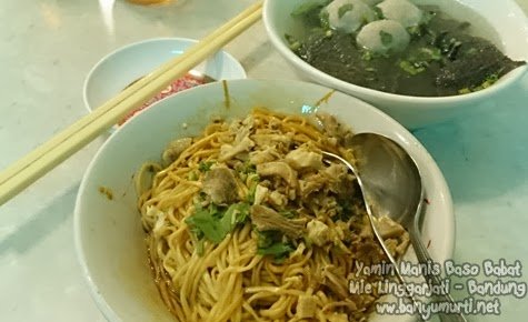 Bandung memang dipenuhi penjaja makanan legendaris yang sudah memulai usahanya puluhan tahun yang lalu. Tak terkecuali di tempat ini, Mie Linggarjati. Menurut sang empunya, tempat ini sudah mulai berjualan makanan (dulunya Rumah makan) sejak tahun 1950. Ini berarti sudah bertahan selama 60 tahun! Apa sih yang menjadi keistimewaan tempat ini? Yamin Manis Baso Babat menjadi pilihan menu utama saya. Biasanya saya bukanlah penikmat mie, tapi penggemar baso. Disini keadaan terbalik, saya benar-benar menikmati setiap helai mie yang tersaji di atas mangkok, entah mengapa aroma gurih dan manis dari yamin manis yang ditaburi suwiran daging ayam halus ini begitu pas dengan lidah saya, jarang-jarang. Sementara itu baso yang disajikan di mangkok terpisah bersama kuah sendiri tidak terasa istimewa bagi saya. Tapi babatnya oke loh, empuk dan tidak liat. Jadi buat saya, magnet utama tempat ini ada di Yaminnya. Harganya relatif mahal untuk ukuran mie baso, satu porsi yamin manis baso babat ini dihargai sekitar 35rb rupiah. Tapi puas lah…