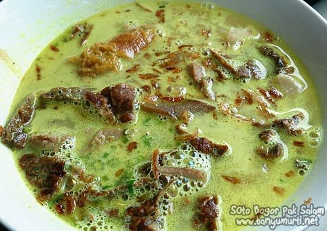 Kuah santan kuning dengan harum rempah yang khas dengan pilihan isinya yang bisa kita tentukan sendiri: daging sapi, otak, paru, limpa, lidah, usus, babat dan kikil. Disandingkan dengan nasi yang sudah bertabur bawang goreng. Itulah Soto Bogor, kuliner khas Bogor yang bisa kita nikmati di banyak tempat di kota hujan ini. Tapi ada yang beda dengan tempat yang satu ini, Soto Pak Salam. Berlokasi di salah satu sentra kuliner tradisional kota Bogor, Soto Pak Salam buka tidak di saat jam makan pada umumnya. Pukul 4 sore mulai melayani pelanggan dan dalam waktu dua jam biasanya dagangannya sudah ludes terjual. Antrian tampak selalu memenuhi kedai kaki limanya yang kecil di salah satu sisi Jl. Suryakencana, apalagi di saat akhir pekan dimana banyak orang dari luar kota yang juga ingin turut mencicipi salah satu ikon kuliner Bogor ini. Apa yang membuat Soto Pak Salam ini begitu ramai dikunjungi?
