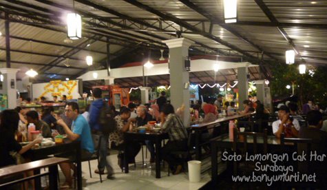 Saya datang ke Soto Lamongan “Cak Har” ini di malam kamis, bukan weekend tentunya. Tapi lihatlah keramaian yang ada di tempat ini, hampir semua meja terisi penuh, sepintas saya hitung jumlah pengunjung pada saat saya bersantap di sana lebih dari 50 orang dan itu terus bergantian datang dan pergi. Wuihhh… Kuliner Surabaya yang tidak boleh anda lewati