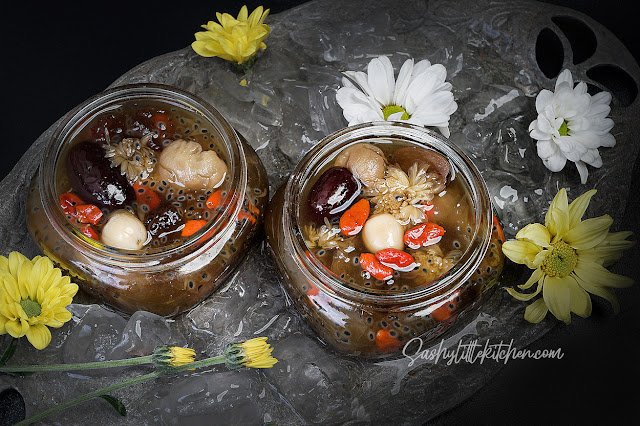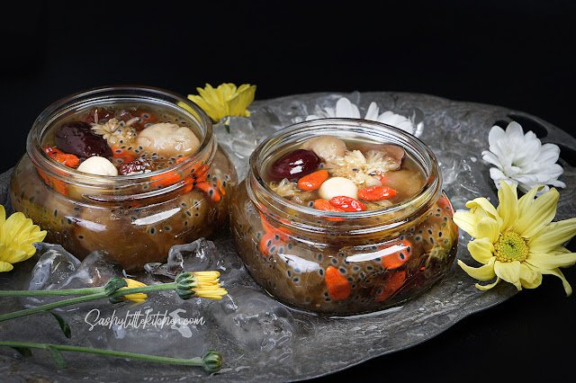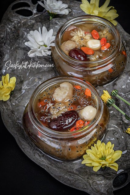 | Peach gum desserts dengan Herbadrink Chrysanthemum disajikan dingin |