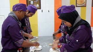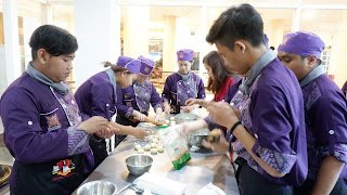 kelompoknya. Kelompok 1, ditugasi membuat Sweet Pillow Bread, sedangkan Kelompok 2 kebagian job membuat Savoury Pillow Bread seperti yang dicontohkan Chef Vivi.