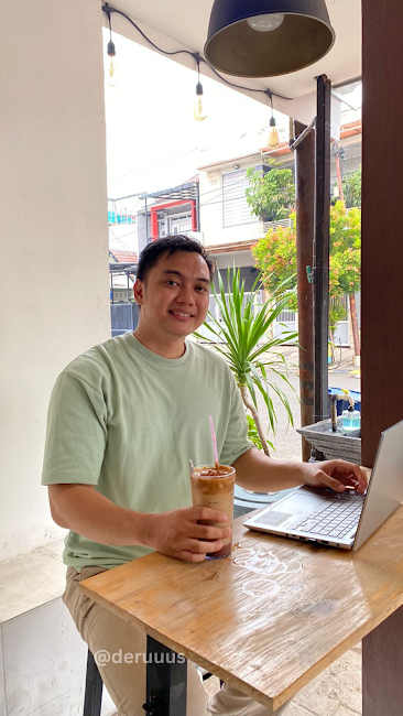 Sambil kerja, Derus ditemani Es Kopi Milo Susu yang bikin mata langsung jreng berkat kopinya yang enak. Taburan Milo selain menambah kesan cantik pada tampilan minuman juga memiliki rasa coklat khas yang menjadi trademark-nya.