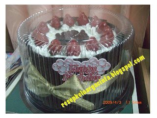 Sejak ikut kursus cake dasar dan cake decorating ibu Fatmah Bahalwan bulan January 2009 lalu, baru kali ini aku bikin cake atas pesanan, maksudnya bukan untuk dimaem sendiri.