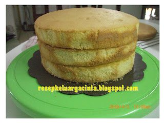 Jadi, aku buatkan 3 lapis sponge cake resep Yongki, tiap lapis dioles dengan selai apricot