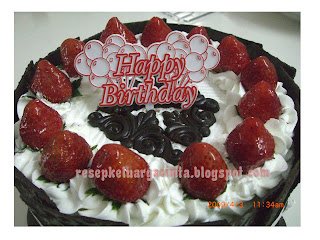 diberi pagar coklat yang dibuat pakai cetakan coklat Arabesque. Di atasnya aku beri tulisan Happy Birthday, beli jadi, karena belum pe-de bikin tulisan sendiri π
