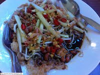 Karena sudah lapar, maka penulis segera memesan nasi bakar. Sambil menunggu nasi bakar, penulis juga memesan tahu telor. Tahu telor yang disajikan ini mengingatkan penulis dengan makanan khas Palembang, yaitu lenggang, dengan tahu yang digoreng dengan telor yang dikocok serta ditaburi dengan potongan mentimun, tauge, kacang goreng, irisan cabe merah, irisan bawang merah dan bawang putih yang disiram dengan kuah yang mirip dengan pempek. Rasanya tidak mengecewakan walaupun tidak terlalu istimewa.