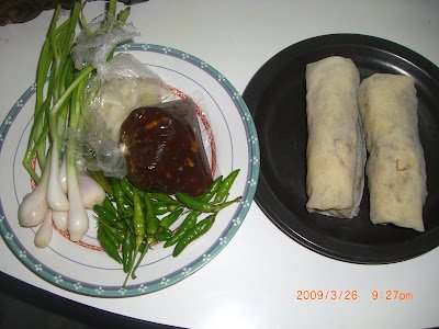 Libur hari raya Nyepi kemarin (26 Maret 2009), Mamie dan teman temannya datang dari Semarang ke Surabaya. Yang aku tunggu tunggu, selain orangnya (Mamie) tentu saja oleh olehnya. Dan, berdasarkan pesanan, kemarin Mamie bawain Lunpia Semarang, Ayam goreng Kalasan Dr. Cipto, arem arem dan petis tahu isi. So, sore sore kami sekeluarga berangkat ketemuan sama Mamie. Yang pertama dilakukan oleh Ibundaku tercinta ini waktu ketemu adalah menjelaskan treatment yang harus dilakukan pada oleh oleh dari Semarang. Petis harus disimpan dikulkas, lumpia kalau belum dimakan simpan dikukas, ayam kalau mau dihangatkan musti digoreng dengan cara gini gitu, arem aremnya jangan sampai gini gitu….halahhh…khas Mamieku, bukan nanyain kisah hidup anaknya selama hidup diperantauan…qiqiqiqi….