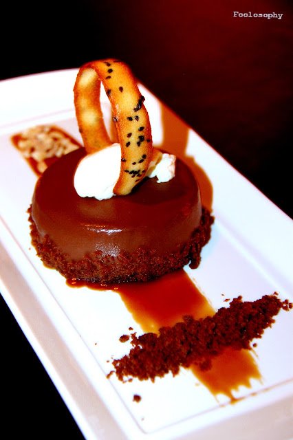 Hands down to these chocolaty dessert! Tampil dengan presentasi yang cantik, chocolate mousse yang terbuat dari Valrhona yang merupakan salah satu jenis terbaik bertekstur sangat lembut dan creamy dengan rasa coklat yang pekat dan sedikit pahit khas dark chocolate. Chocolate crumble memberikan tambahan tekstur menarik dengan sesendok vanilla chantily yang ringan. Saus Salted Caramel diberikan di bawahnya sebagai penyeimbang rasa manis dan legit khas coklat.
