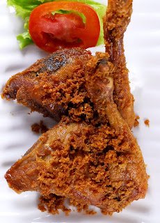 5. Penyajian: Atur ayam goreng di dalam piring saji. Taburi atasnya dengan kremesan. Sajikan.