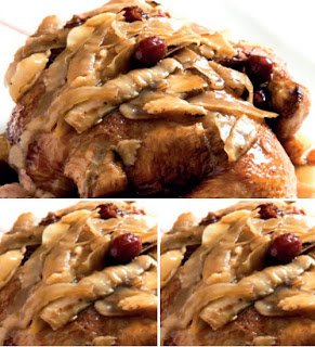 5. Letakkan ayam dan jamur di dalam wadah anti panas, balur dengan bumbu yang sudah ditumis.