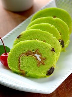 Aroma wangi pandan terasa pas dengan paduan kismis dan lembutya tekstur bolu. Bagi Anda yang belum memiliki ide suguhan di saat arisan atau perayaan hari lebaran, kue ini layak dicoba. Resep/Dapur Uji/Foto: Budi Sutomo.