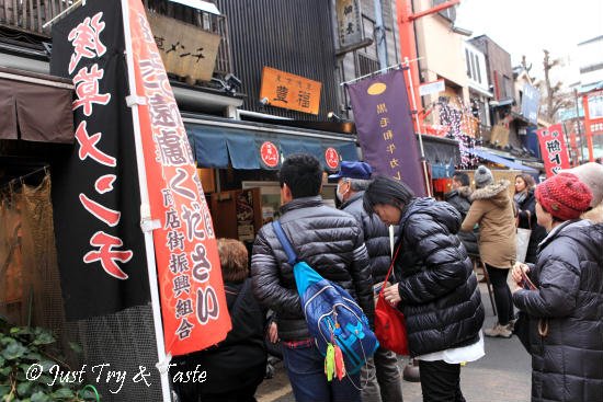 Sebuah warung makanan yang menjual aneka snack yang digoreng termasuk korokke di Asakusa, Tokyo, terlihat laris. Tepatnya luar biasa ramai hingga antrian berduyun-duyun tampak menyesaki jalan di depan warung ‘gorengan’ tersebut. Saya dan kakak saya, Wulan, walau penasaran dan berulangkali mengintip dari balik bahu-bahu para pengantri untuk melihat makanan yang sedang dimasak tetap tidak berubah pikiran untuk mencoba. Selama di Jepang, terus terang kami jarang mencoba aneka kuliner disana, kecuali beef ramen di sebuah resto halal di Asakusa, mie udon dan tempura di Sanuki Udon di Kansai International Airport (sebuah resto udon yang mendapatkan sertifikat halal dari Malaysia), dan beberapa camilan seperti takoyaki dan okonomiyaki di Shinsaibashi Shopping Center di Osaka.