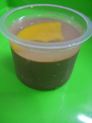 puding coklat dengan potongan peach