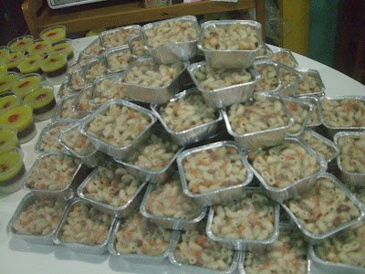Tadinya untuk macaroni schotel mau potongan biar cut cost, tapi aku takut njebrot (kecuali mau dilapis tepung panir trus digoreng..tapi jadi gak enak, menurut aku) dan pasti makannya jadi repot karena mbak pantry harus nyediakan piring kecil untuk 100 orang…. ya sudah, akhirnya pakai cup aluminium kecil saja.